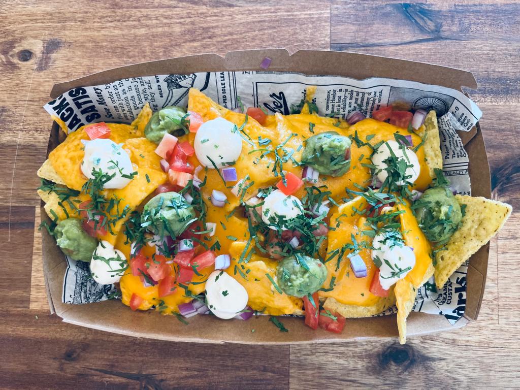 Tortilla chips, cheddar, pico de Gallo, guacamole, lemon cream